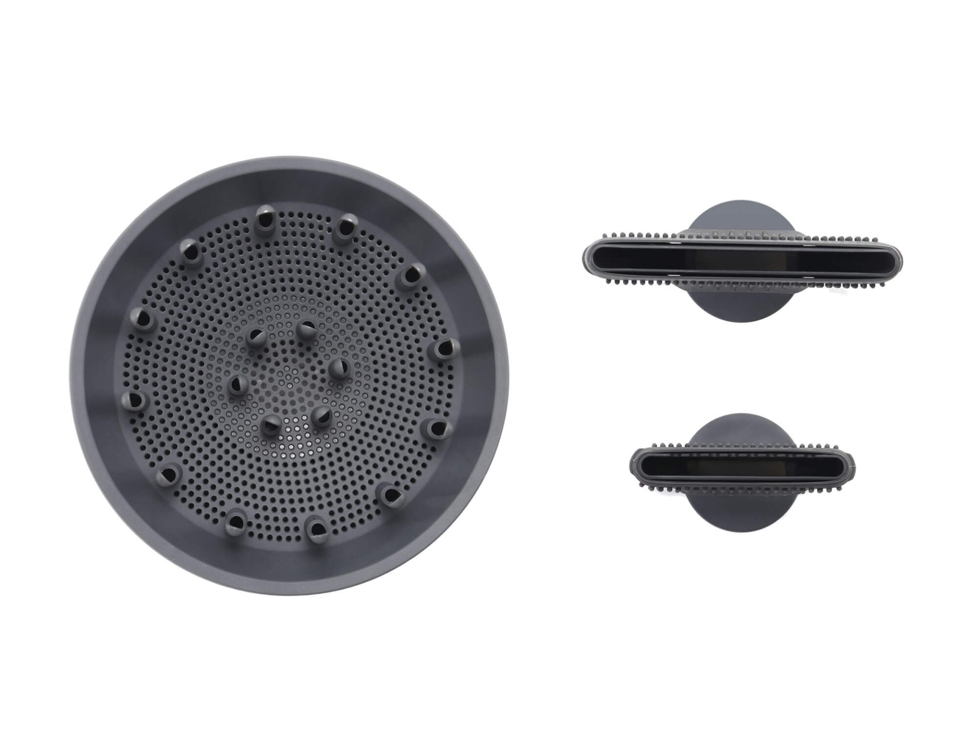 Termóstato de segurança Gerador de iões que suaviza e hidrata o cabelo, diminuindo o tempo de secagem. Cabo extra flexível de 3 m. Fluxo de ar 86,4 m3/hora. 2 bicos direccionáveis tamanho médio / grande (inserível com imã)