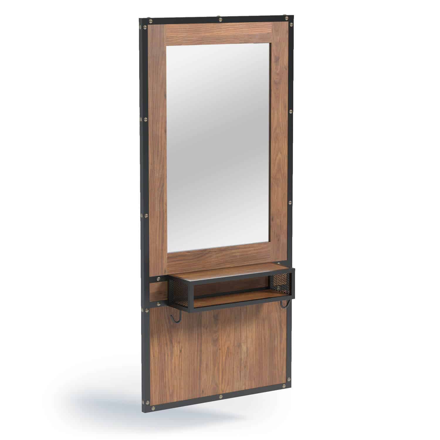 Espelho de Barbeiro com rebordo polido. Oferece praticidade graças aos 2 ganchos de fixação da máquina. Projetado para oferecer uma aparência moderna, elegante e de estilo industrial