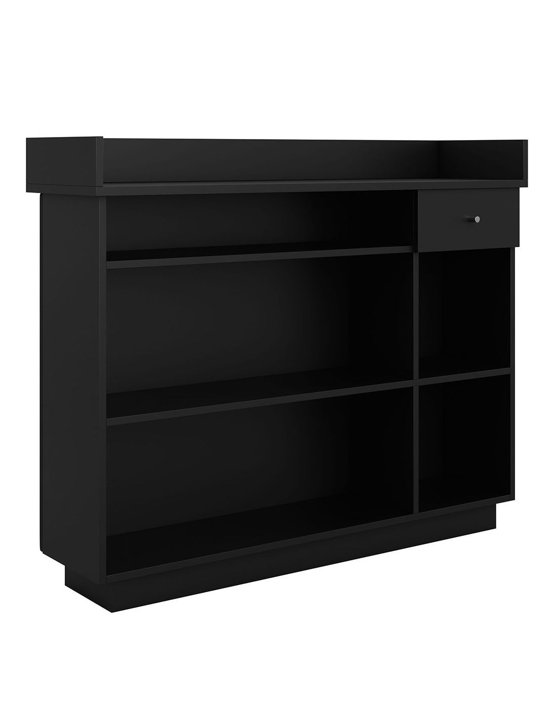 Balcão de recepção Forty One em laminado preto standard com frente forrada.