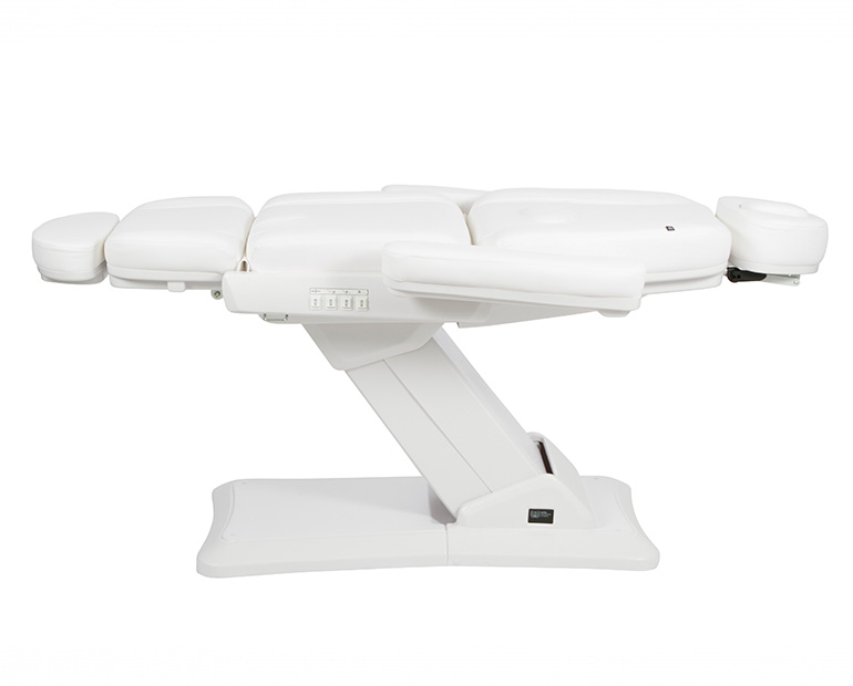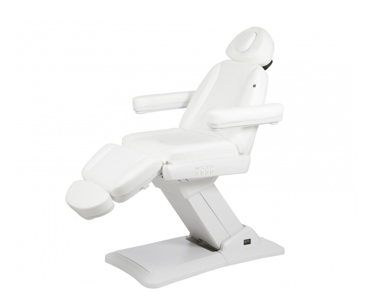 Marquesa Maxi sofisticada e de alto conforto equipada com 3 motores que controlam a altura, o encosto e a inclinação do assento. Assento para pés ajustável por elevador a gás. Apoios de braço reclináveis e encosto de cabeça ajustável. Os painéis de botões embutidos no encosto, no apoio de pernas e no assento permitem um controle completo de todas as funções de qualquer ponto da cadeira. Esta versão inclui a função RESET para trazer a cadeira de volta à posição zero. Estofo em PU branco de alta qualidade que facilita a limpeza.